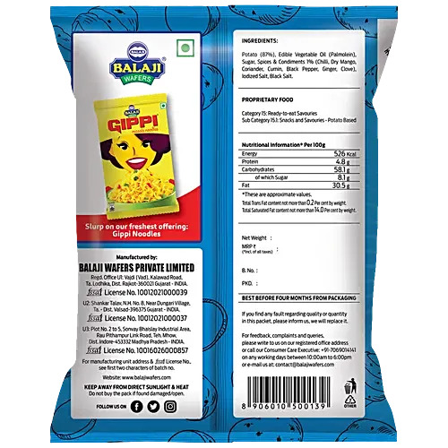 bout the Product A spicy flavoured masala potato snacks for those who enjoy the taste of potato wafers with a blend of handpicked spices. Party Ideas: 1. Perfect for an evening snack or a snack during a movie with a glass of chilled beverage to go with it! 2. Want to add spices to your boring dinner-days? Pick up a pack of Balaji Magic Masala Wafers and enjoy the flavourful dinner with your family. Experience bliss in every bite and shake up things. 3. Feeling bored? Pick up a pack of these Balaji Potato snacks and a bottle of coke, invite your friends over and make your day as happening as forever!