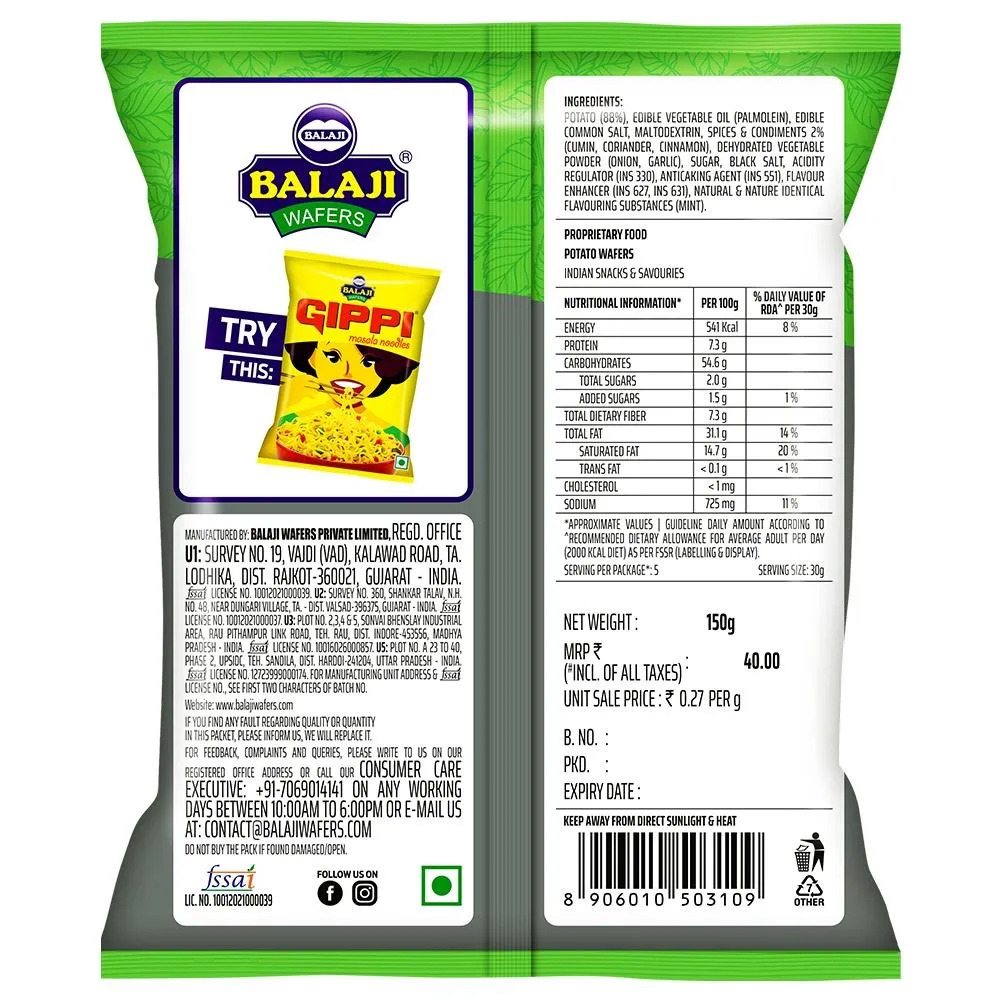 Description : Balaji Rumbles Pudina Twist Wafers are crispy and flavorful wafers with a refreshing mint flavor. Made with high-quality ingredients and seasoned to perfection, these wafers are a delicious snack for any time of day. They're perfect for enjoying on their own or with your favorite dip.