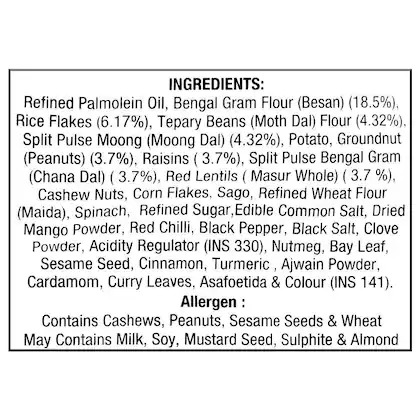 Description Haldiram’s is an Indian food company manufacturing a variety of traditional and western sweets, snacks, namkeens, etc. Haldiram's Nagpur All In One Mixture is an all time favourite snack. The mixtures contains a generous mix of pulses, gram flour sticks and a perfect mix of hand-picked ingredients. The taste of nutty flavours, sweet and saltiness brings a burst of flavours with every bite. Enjoy it as a tea-time or as a standalone snack. Buy this product online today!