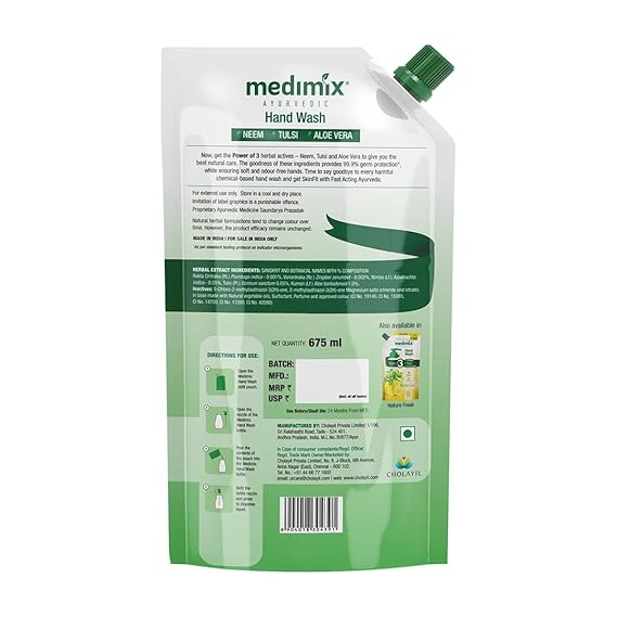 Medimix Ayurvedic Nature Care Hand Wash Refill With Neem, Tulsi & Aloe Vera For Soft & Odour-Free Hands 675ml | 99.9% Germ Protection | Shop Herbal | Natural | Soap-free | 100% Vegan