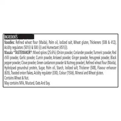 Description\\r\\nMaggi 2-Minutes Noodles have been a classic Indian snack for a good few decades now. Nestle brings you another delicious instant food product - Maggi 2-Minute Masala Instant Noodles! These Maggi noodles offer you the delicious masala flavour that will leave you wanting for more. It is not just loved by young ones but adults too. For every busy day or lazy evening, these noodles are easy to make and are perfect for those untimely hunger pangs. They are made from all-natural ingredients and offer you a lip-smacking taste as they are loaded with authentic flavours. So go ahead, buy Maggi 2-Minute Masala Instant Noodle online today!\\r\\nDisclaimer:\\r\\nDespite our attempts to provide you with the most accurate information possible, the actual packaging, ingredients and colour of the product may sometimes vary. Please read the label, directions, and warnings carefully before use.