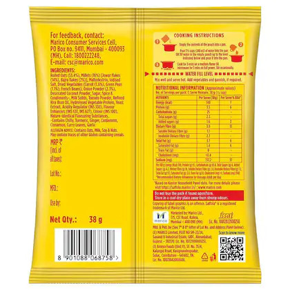 The Indian palate is naturally inclined towards freshly prepared, hot and spicy foods. We crave for those savoury flavours during different times of the day. Saffola Veggie Twist Instant Masala Oats is a rich and creamy mix of aromatic spices with a hint of coconut gravy, Veggie Twist has a delicious and crunchy mix of carrots, peas and french beans. These oats are bursting with flavour as they are made from 100% natural wholegrain oats along with real vegetables and the choicest of masalas. Eating Saffola Masala Oats as part of your daily routine is not just fantastically healthy and delicious, but also requires minimal effort. Saffola Masala Oats - the smarter way to stay fit as they are high in Fibre and Protein which keep you fuller for longer, control your hunger pangs and thereby help you manage weight. So go ahead, buy Saffola Veggie Twist Instant Masala Oats online today.\\\\r\\\\nDisclaimer:\\\\r\\\\nDespite our attempts to provide you with the most accurate information possible, the actual packaging, ingredients and colour of the product may sometimes vary. Please read the label, directions, and warnings carefully before use.
